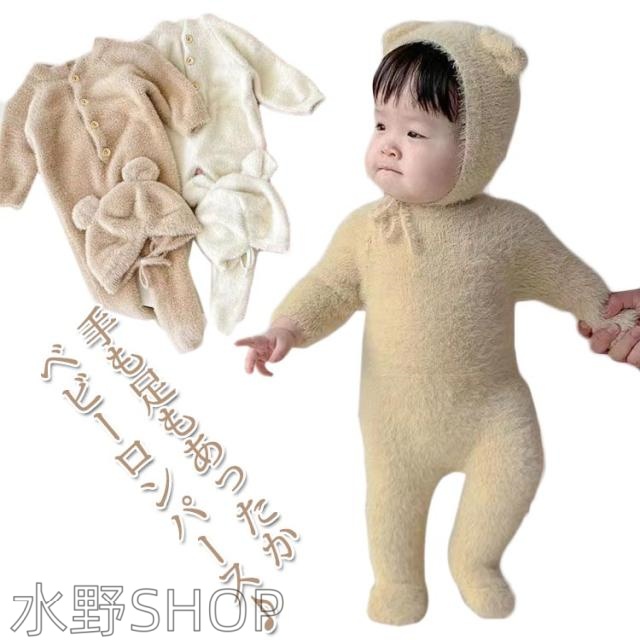 着ぐるみ クマ もこもこ ロンパース ベビー 防寒着 ベビー着ぐるみ 赤ちゃん服 新生児 長袖 着る毛布 秋冬 暖かい 防寒対策 帽子付き オールインワン 男の子 女の子 パーティー コスプレ