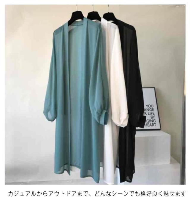 ロングカーディガン レディース ロング丈 カーディガン 透け感 長袖 シフォン 冷房対策 紫外線 UVカット サマーカーディガン 夏カーディガン 清涼感 薄手 涼しい サマー 無地 長袖 おしゃれ ゆったり キレイめ トップス 春夏 送料無料