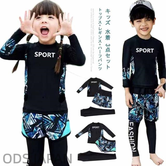 キッズ 水着 3点セット 男の子 女の子 子供 水着 セパレート ジュニア トランクス 長袖 ラッシュガード レギンス フィットネス 水着 ガールズ ボーイズ スイムウェア 海水浴 UV対策 日焼け防止 こども 子供用 90-160cm