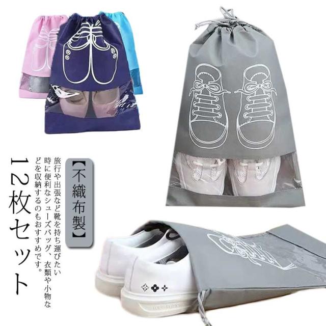 シューズケース 巾着 12枚セット シューズバッグ 靴袋 シューズ袋 シューズ入れ メンズ レディース 防水 半透明 防塵 ポーチ 収納 大人 高校生 中学生 小学生 男の子 女の子 旅行 出張 入学 スポーツ アウトドア ゴルフ サッカー 野球 不織布