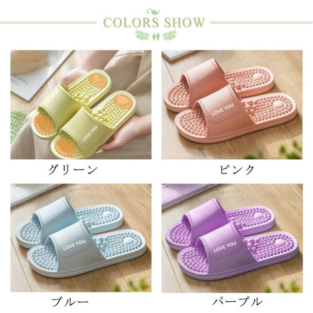 | 足裏にあるツボを刺激するマッサージ健康スリッパ。 室内・屋外問わず気軽に履くことができ、歩きながら足つぼマッサージができます。 ツボ押しマットより歩くたびにツボが刺激されるので便利です。 室内履きやバススリッパ、ベランダ用など様々な用途に◎ 4種類のカラーからお選びください。 | |