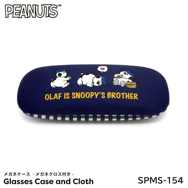 メガネケース スヌーピー キャラクター SPMS-154 PEANUTS メガネクロス付き メガネ拭き ネイビーチェック オラフ マリモクラフト