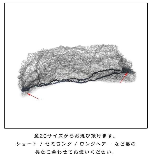 | まとめた地毛に、クルッと巻いてピンで留めるだけ☆ 極細ネットで網目も目立たない!忙しい朝もこれ1つでサッとまとまる! 付け心地も自然で、髪との馴染み方もバツグン♪伸縮タイプのゴムでしっかり留めます。 高めのポニーテールでも、低めのポニーテールでもご使用可能! 全20サイズからお選び頂けます。ショート / セミロング / ロングヘア— など髪の長さに合わせてお使いください。 | |