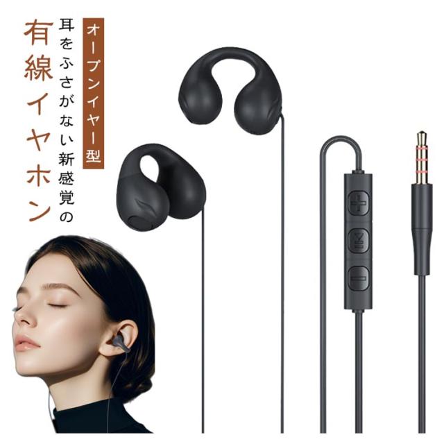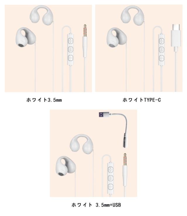オープンイヤー 有線イヤホン 耳をふさがない マイク付き 両耳 オープンイヤー型 イヤホン 有線 イヤーカフ型 オンライン会議 3.5mmジャック USB Type-C 耳掛け 耳を塞がない 耳にいれない 蒸れない 耳が痛くならない パソコン PC スマホ