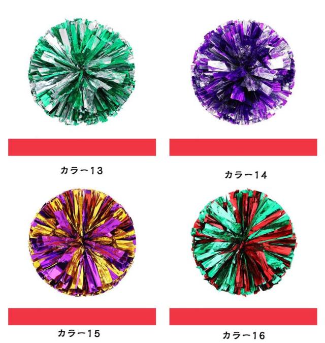 | 大人気のらくらくチアポンポンが登場! 同色が10個入った1セットになり、両手に持って使う場合は5人分相当です。 こすり合わせると、シャカシャカと音が出て、ばっちりアピール♪チアダンスの小道具にピッタリなアイテム。 ハンドフリータイプだから手のひらが使える!握力がなくても楽に使えます。 キラキラ&メタリックなポンポンです。コンサート、応援グッズとしてもオススメ。 | |