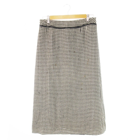【中古】レリアン Leilian タイトスカート ミモレ ロング バックプリーツ ウール パイピングレザー 千鳥格子 11 黒