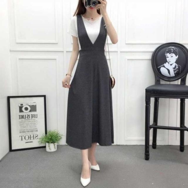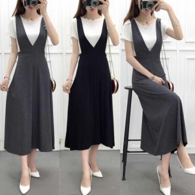 ジャンパースカート サロペット 深Vネ レディースファッション 新登場! ブラック グレー ネイビー XS S M L 2L 3L 4L 5L