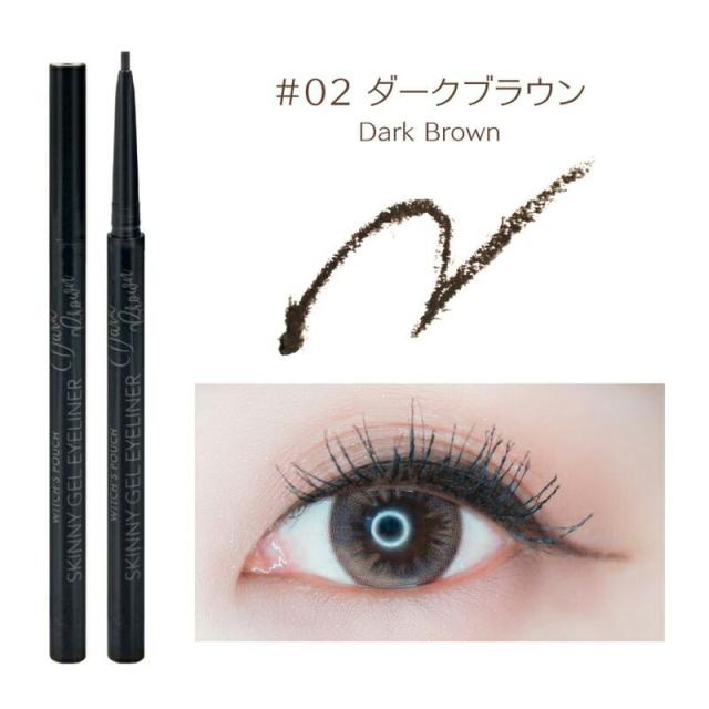 ウィッチズポーチ スキニージェルアイライナー 02 ダークブラウン(アイライナー ジェルライナー ジェル トレンド 目元 アイメイク メイク メイクアップ 落ちにくい 極細芯 瞬間密着 高発色 カラバリ)