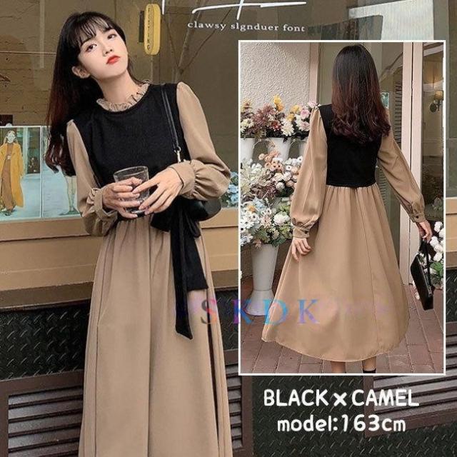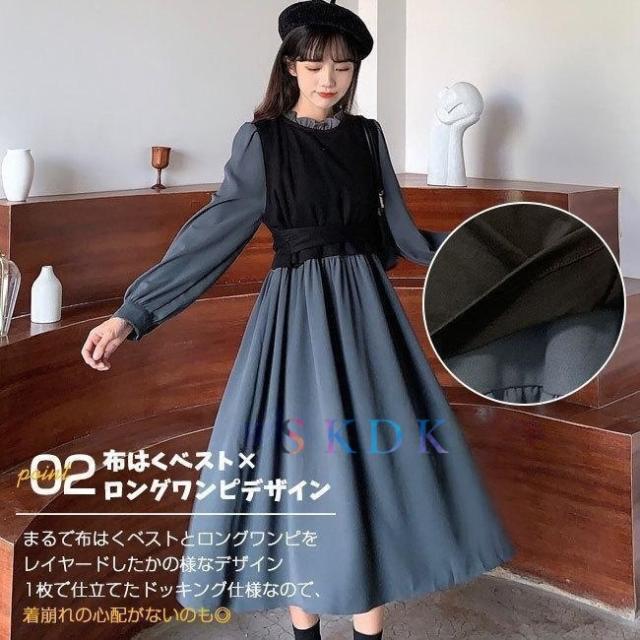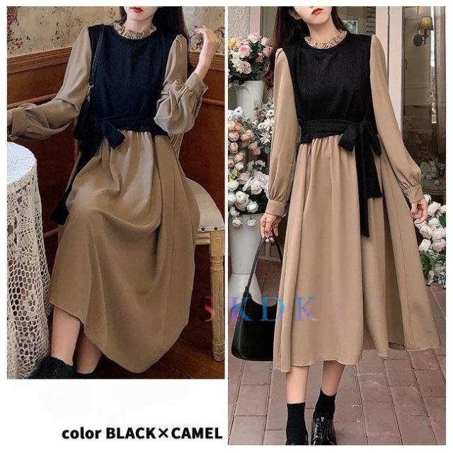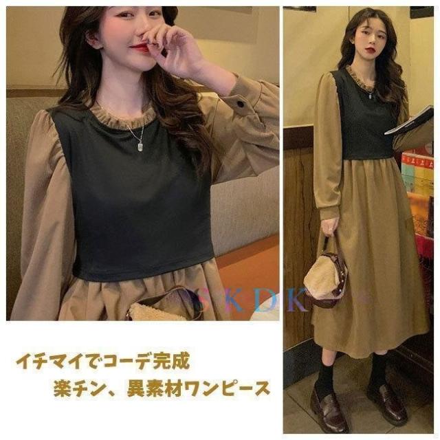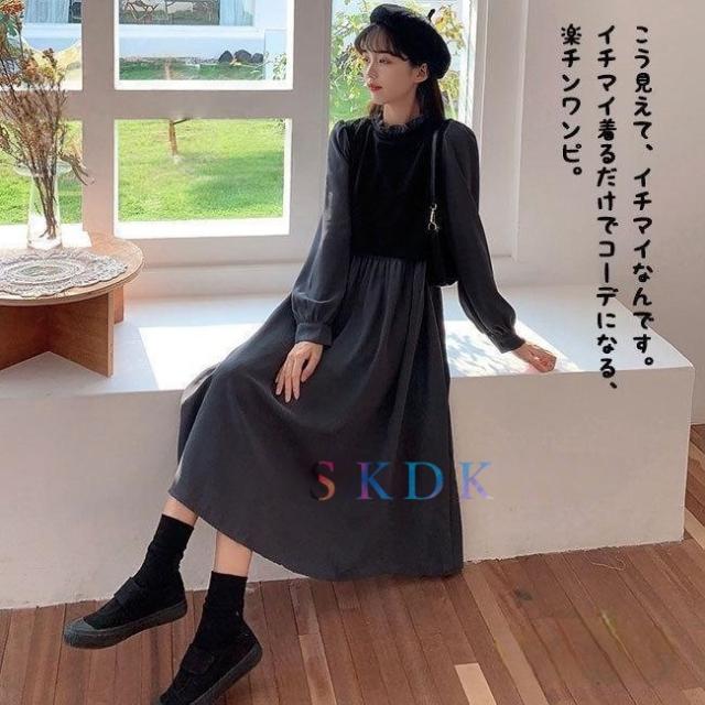 【★2点目1000円OFF!】ラウンドネックワンピース レディース ラウンドネック ロング丈 長袖 新作 キュート 大人 カジュアル 無地 大人 カジュアル 無地 着痩せ シンプル おしゃれ ギフト 秋服 秋冬
