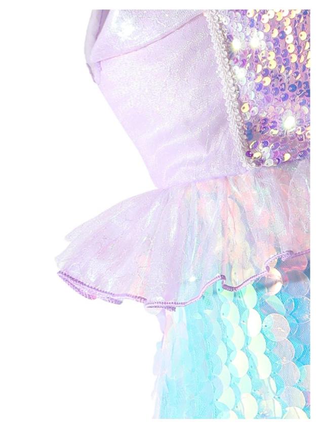 | 人魚姫になれる夢のプリンセスドレス キラキラ輝くスパンコール、まるで本物の人魚姫のような気分に。 大粒のスパンコールがキラキラと揺れて、オーロラの輝きを放ち、ハロウィンの仮装やパーティ、舞台や発表会でも映え、写真撮影にもぴったり。女の子の憧れを叶える一着 誕生日やクリスマスの贈り物としても喜ばれる、子どもが笑顔になれるドレスです。 | |