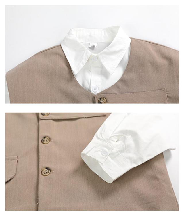 | 色んなフォーマルシーンで活躍する、セットアップ子供服。 凛々しく見えること間違い無いでしょう!卒園式や入学式、七五三に結婚式や発表会。 生地といい、デザインといい、お客様に良い体験をできるように努力します。 ちょっと大人っぽいデザインが男の子らしさをアップし、子供をより格好よくして、足もまっすぐに長いです。 丈夫で通気性があり、耐久性があるので、長く使いたい人におすすめです。 | |