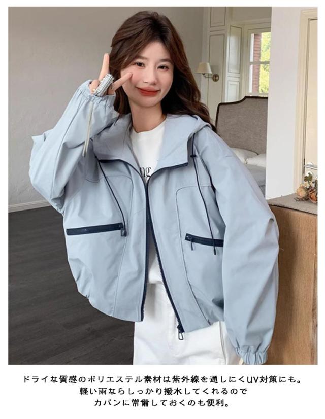 マウンテンパーカー 可愛い ジャケット レディース ウインドブレーカー レディース アウター 春 ミドル丈 薄手 マウンテンパーカー レインコート フード付き 通気 軽量 ブルゾン 防風 防花粉 アウトドア スポーツ 日常