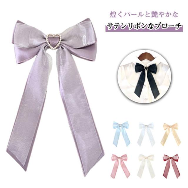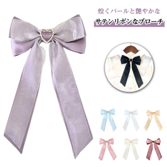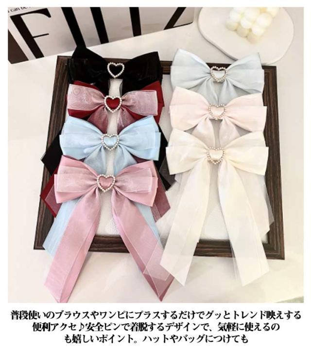 リボン 卒業式 結婚式 アクセ かわいい 入学式 安全ピン 発表会 ブローチ 地雷 ハートパール 人気 お子様 パーティー 大きいリボン かわいいブローチ クラシカル フェミニン フォーマル ハートパール サテン
