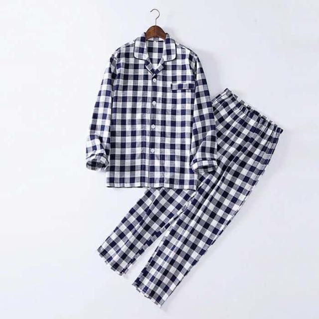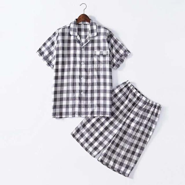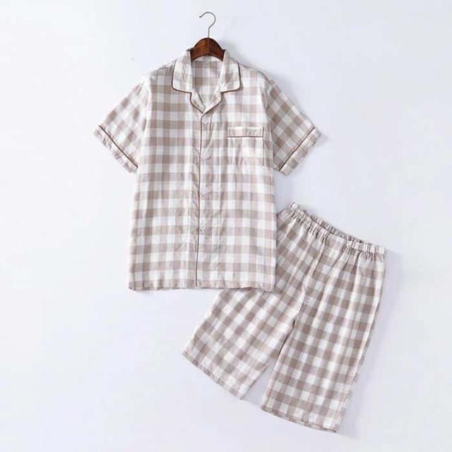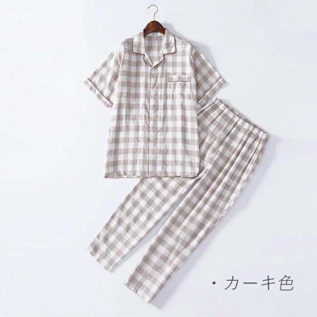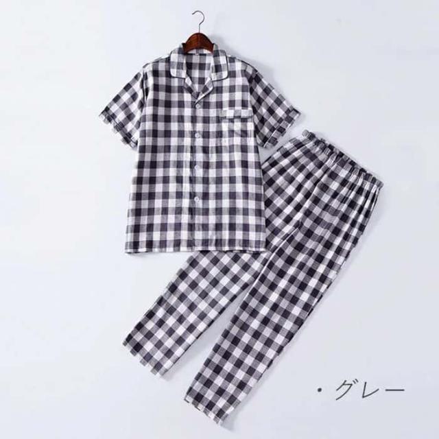 送料無料 パジャマ メンズ チェック柄 春夏 前開き メンズパジャマ 長袖 半袖 綿100% ルームウェア メンズ パジャマ S 半袖長パンツ
