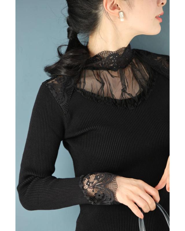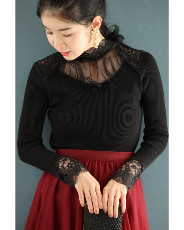 w61536ps 新作 新着 再入荷 CAWAII FRENCHPAVE フレンチパヴェ エレガント ベーシック カジュアル 可愛い かわいい カワイイ おしゃれ オシャレ お洒落 個性 個性的 定番 ベーシック 大人かわいい 大人可愛い 上品 女性らしい デザイン スタンダード ナチュラル きれいめ キレイめ シンプル フェミニン レディース レディースファッション 大人 ママ ミセス 30代 40代 50代 60代 肩周りを飾るレースベールのリブニットカットソートップス 長袖 S M 小さめ 小さいサイズ 低身長 痩せ ほっそり 小柄 細身 ワンサイズ 薄手 春 秋 冬 秋服 秋物 冬服 冬物 伸縮 ブラック 黒 普段着 日常使い ヘビロテ 毎日着れる デイリー使い おでかけ 大人女子 オケージョン セレモニー セミフォーマル パーティー 女子会?結婚式 二次会 食事会 お呼ばれ