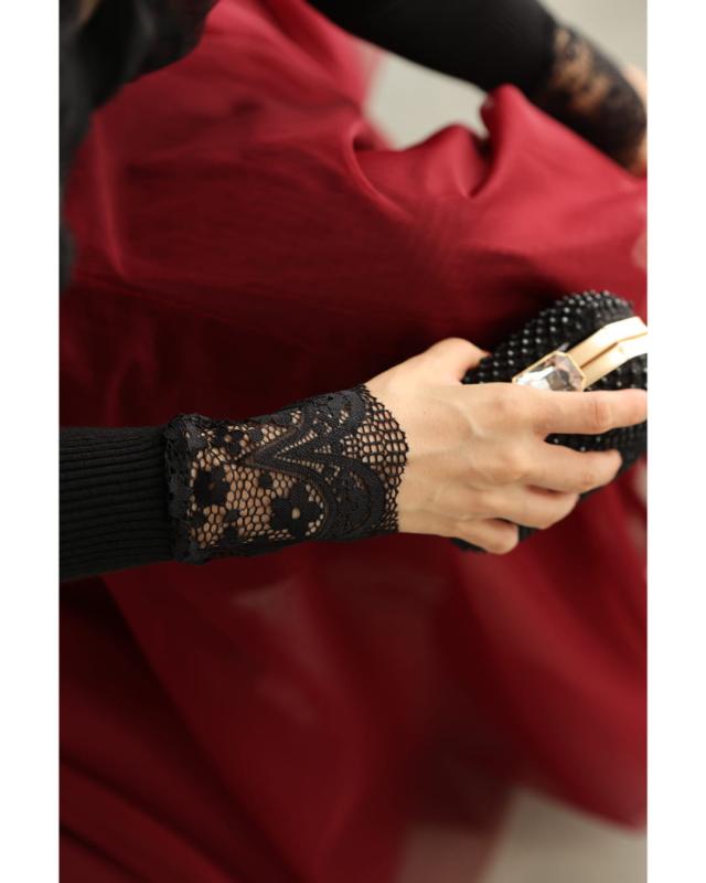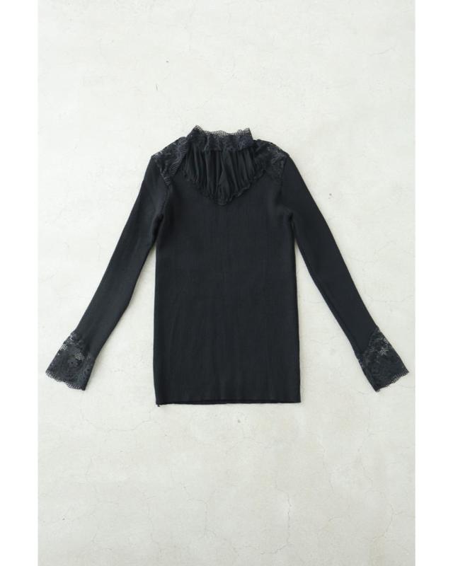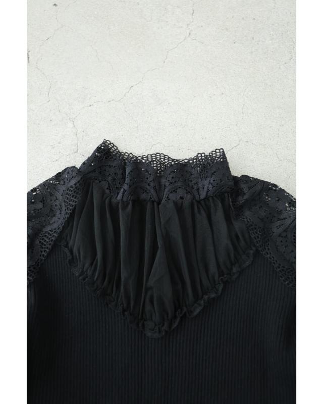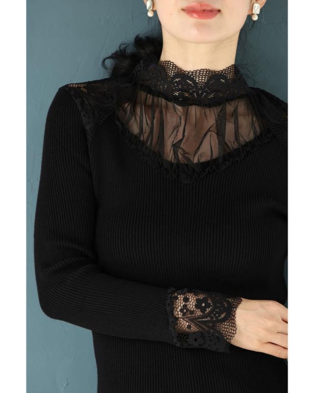 再入荷11月9日 (黒)肩周りを飾るレースベールのリブニットカットソートップス cawaii w61536ps S~M対応 おしゃれ 伸縮 ブラック デイリー おでかけ 女子会 大人可愛い 上品 レディース ファッション ミセス 30代 40代 50代 60代