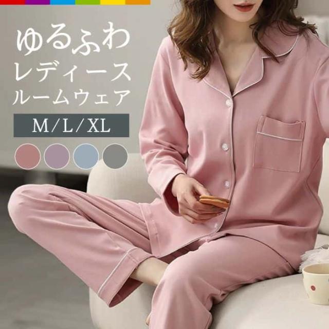 パジャマ レディース 上下セット ふんわり 通年 無地 前開き 可愛い セットアップ ルームウェア 長袖 長ズボン 春夏秋冬 敏感肌 高齢者 ふんわり 柔らかい 女性