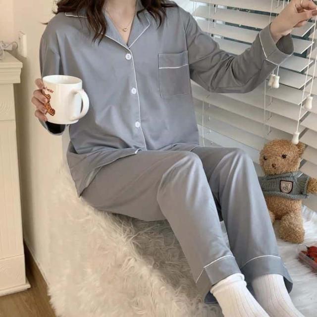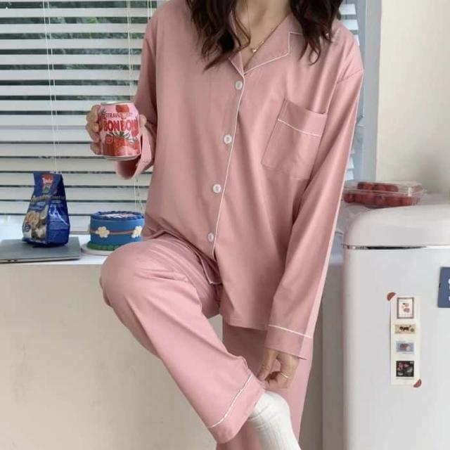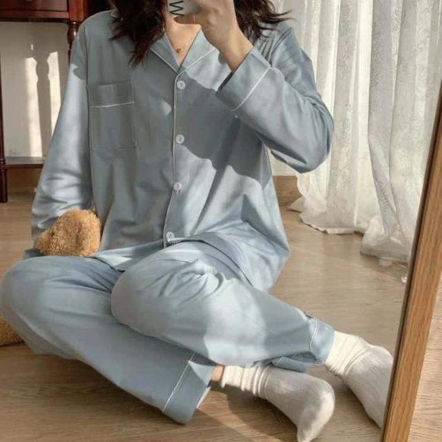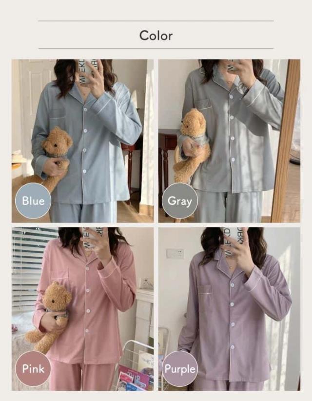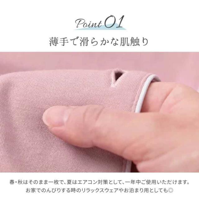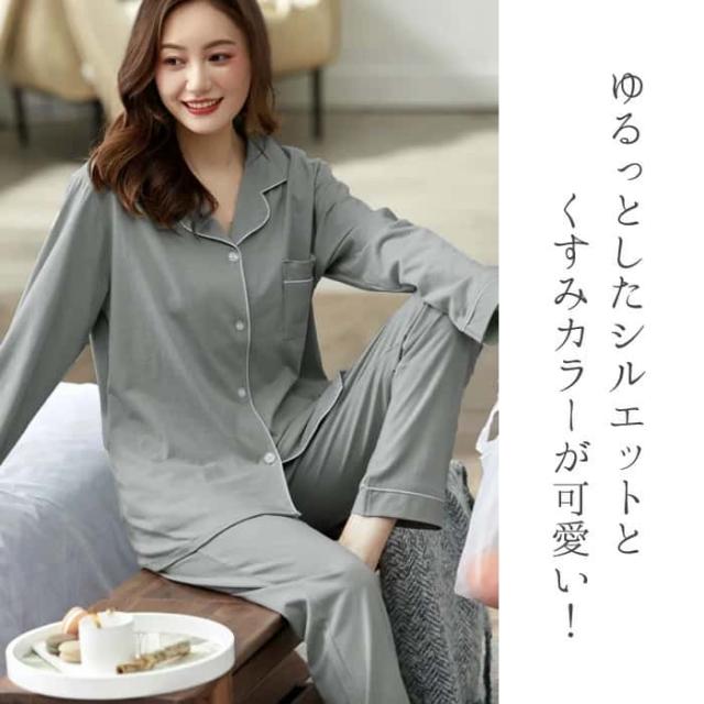 ゆるっとしたシルエットとくすみカラーが可愛い長袖パジャマ。薄手でなめらかな肌ざわりの長袖素材なので、春・秋はそのまま一枚で、夏はエアコン対策として、一年中ご使用いただけます。