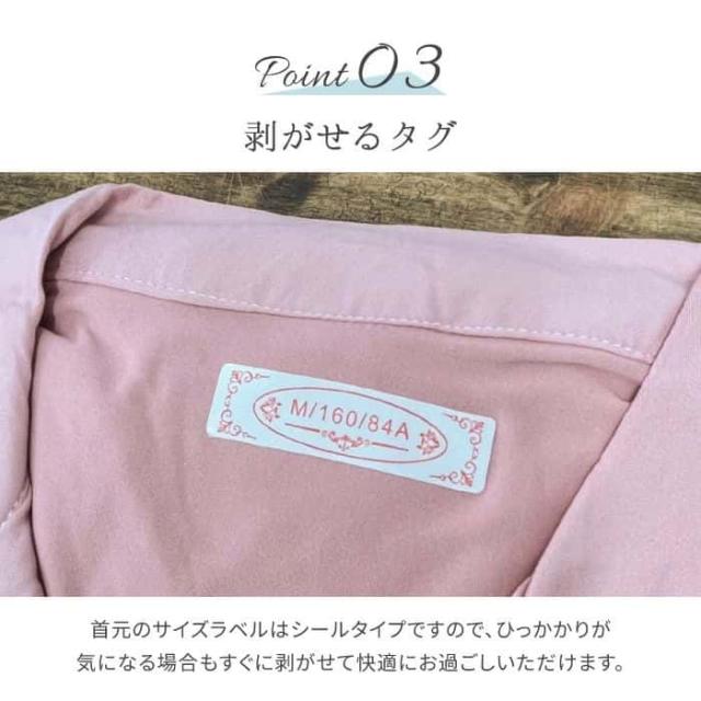 首元のサイズラベルはシールタイプですので、ひっかりが気になる場合もすぐに剥がせて快適にお過ごしいただけます。