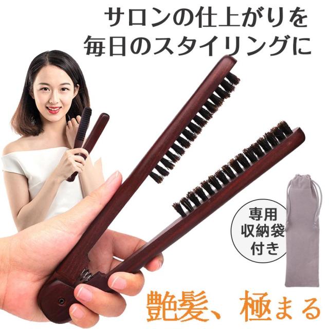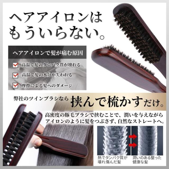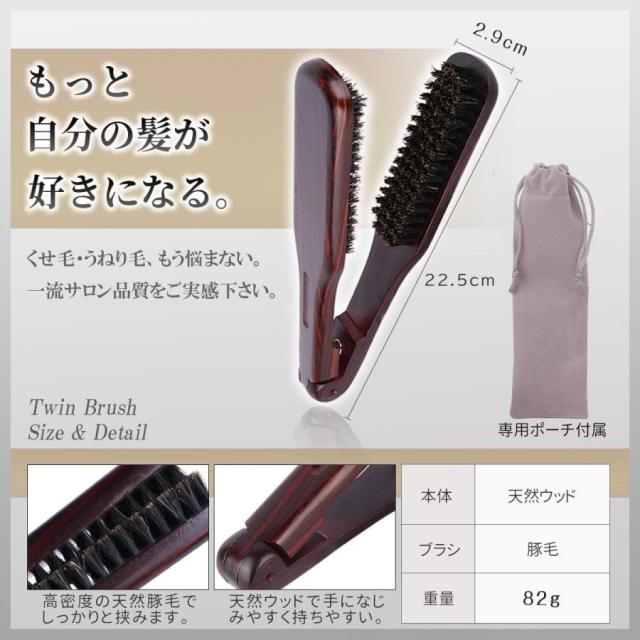 「クーポン配布中」【即納】ヘアブラシ 挟むブラシ 豚毛 ツインブラシ ストレートブラシ 髪 ヘアーブラシ くし ヘアケア 豚毛 髪ブラシ ツヤ猪毛 光沢 静電気防止 傷み保護 ダメージケア サラサラ ストレートブラシ