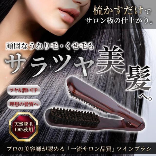 ・豚毛を使用したストレートツインブラシです。静電気の発生を抑え、髪がまとまります。
