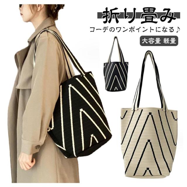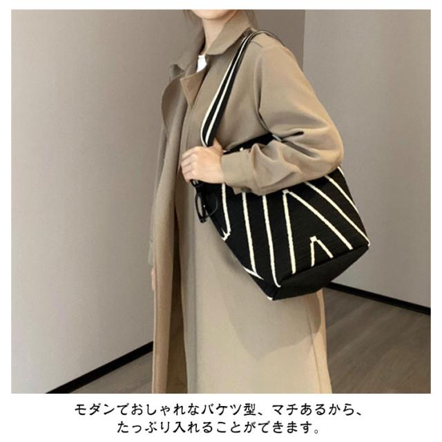 肩掛けカバン レディース ニットバック バケツバッグ 大容量 トートバッグ ハンドバッグ ワンショルダー ニット編みバッグ 春秋冬 折り畳み かばん 韓国ファッション 軽量 ニットトートバッグ 鞄 かばん