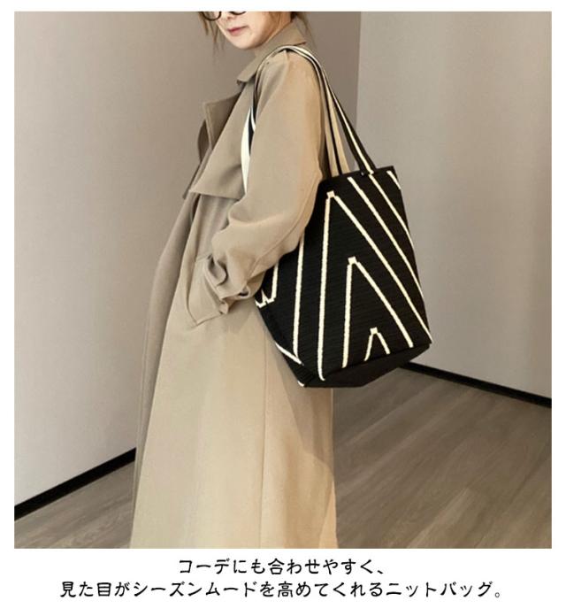 コーデにも合わせやすく、見た目がシーズンムードを高めてくれるニットバッグ。