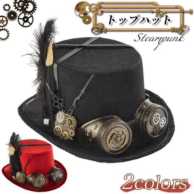 送料無料 2カラー スチームパンク トップハット ゴーグル付き 帽子 羽飾り 歯車飾り シルクハット レディース メンズ 男女兼用 モダン コスプレ ハロウィン 仮装 イベント パーティー
