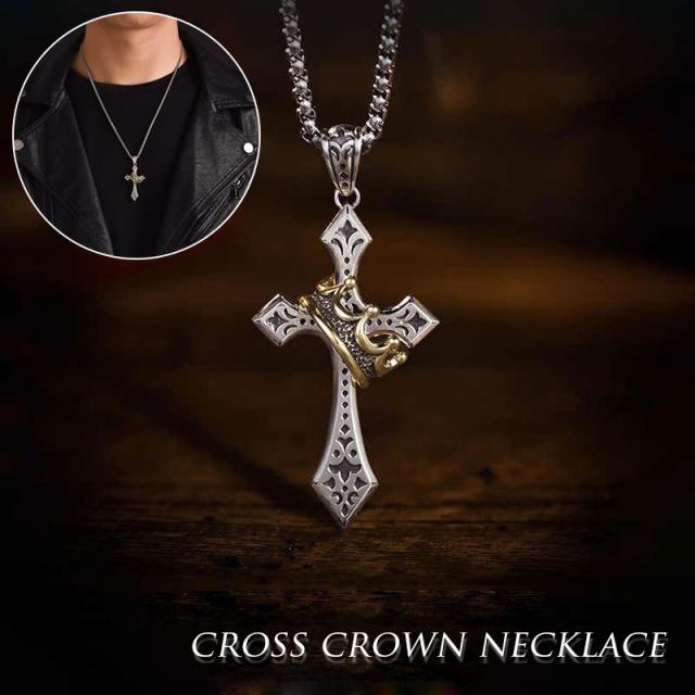 王冠ネックレス 十字架ネックレス クラウンネックレス シルバーネックレス ゴールドネックレス おしゃれネックレス ギフト