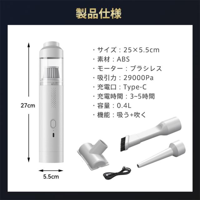ハンディクリーナー 掃除機 強力 吸引 コードレス 車 車載 ミニ ブラシレス モーター 29000pa 家庭用 充電式 静音 軽