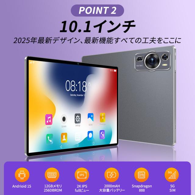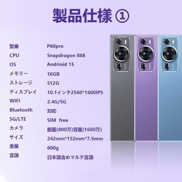 タブレット PC 本体 Android15 大画面10インチ 8GB+256GB テレワーク 2560*1600 ネット授業 動画視聴 在宅勤務 Bluetooth GPS 通話対応 WiFi 母の日プレゼント