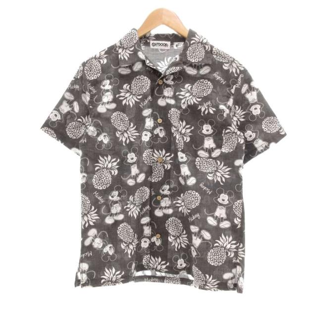 【中古】アウトドアプロダクツ OUTDOOR PRODUCTS ディズニー アロハシャツ 半袖 ミッキーマウス柄 S 黒系 /UO