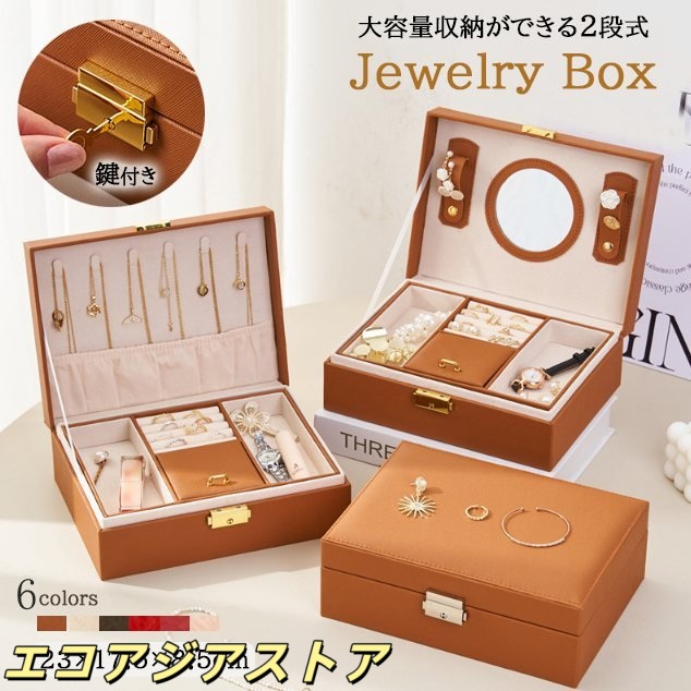 サイズ:約23*17.5*8.5cm・大容量収納ができる2段式ジュエリーボックス。・鏡スタイルとブックスタイルの全2タイプ。・それぞれ小さいピアスや大きいピアス向けに特化しています。・細かい仕切りで区切られているのでアクセサリーを分けて収納できます。・生地は高級感漂うレザー調、防水仕様です。・裏地はソフトな素材なのでアクセサリーを傷つけません。・プレゼントにもオススメです。