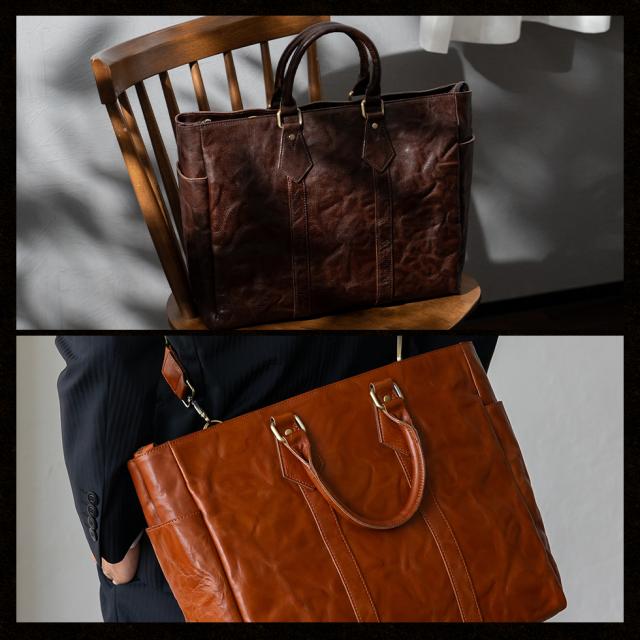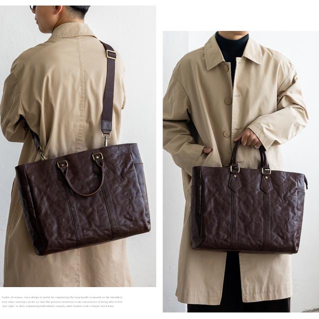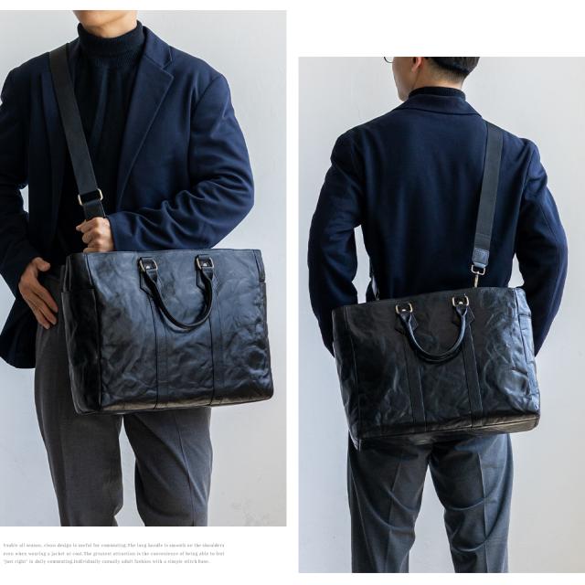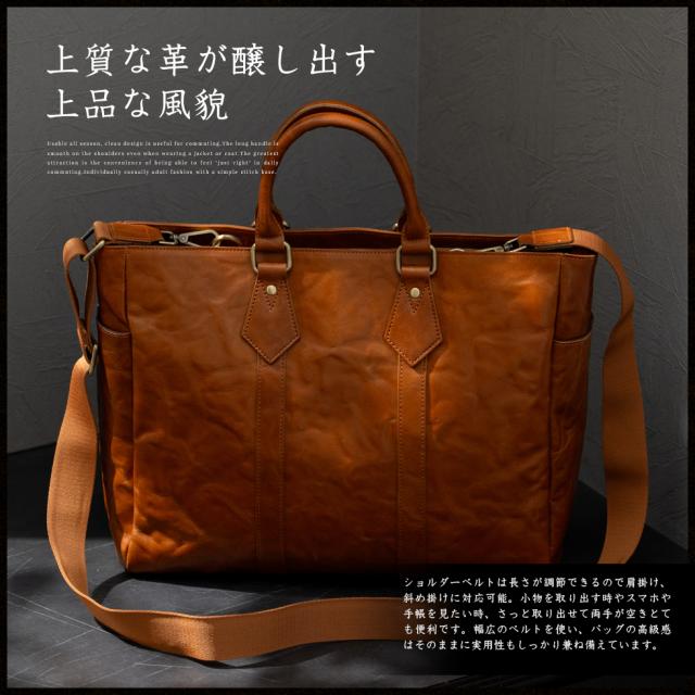 トートバッグ メンズ ビジネス 本革 ビジネスバッグ a4 2way 大容量 大きめ ノートpc タブレット レザーバッグ 革バッグ 本牛革 肩掛け 斜めがけ 横型 通勤バッグ 通勤 通学 シワ加工 高級感 nsb-30378n 【aroco/アロコ】 秋冬 秋バッグ クリスマス プレゼント
