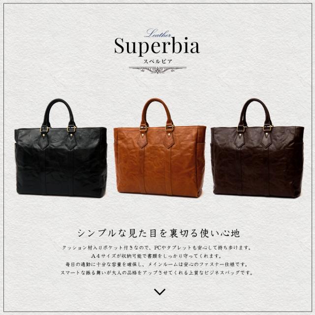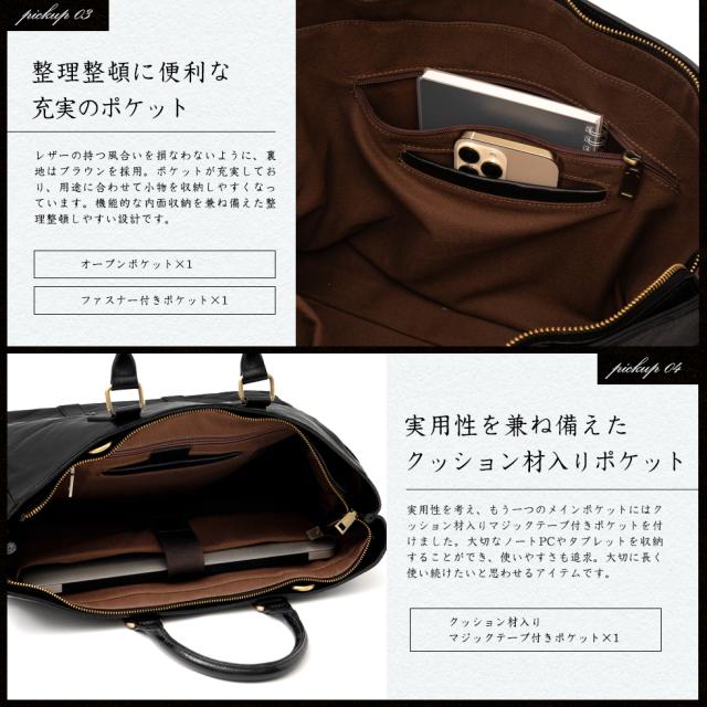 スーツにもスマートカジュアルにも馴染む本革バッグ。