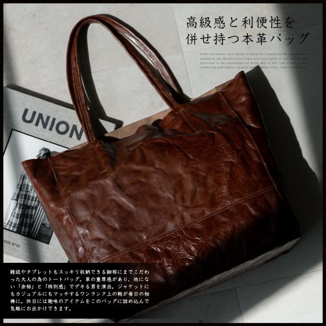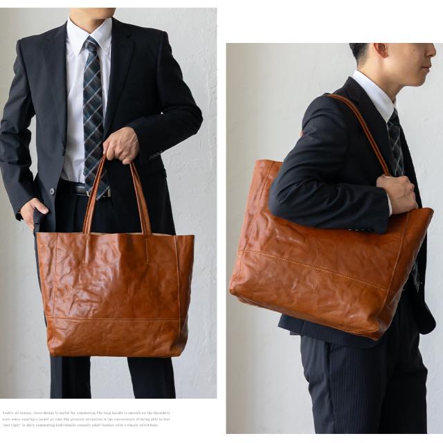 トートバッグ メンズ 本革 ビジネスバッグ 大容量 a4 大きめ レザーバッグ 革バッグ 本牛革 インナーバッグ付き バッグインバッグ マチ広 横型 肩掛け 通勤バッグ 通勤 通学 シワ加工 高級感 nsb-30377n 【aroco/アロコ】 秋冬 秋バッグ クリスマス プレゼント