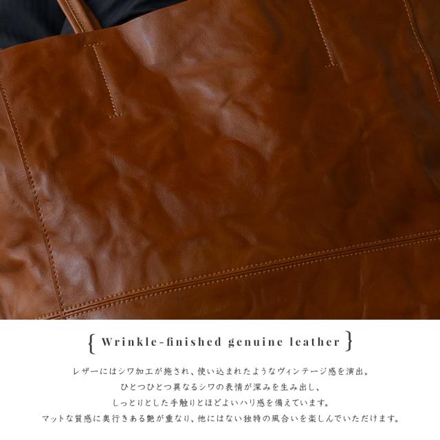 シワ加工を施した本革は、一つひとつ異なる表情を持ち、ヴィンテージ感と高級感を演出。