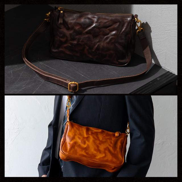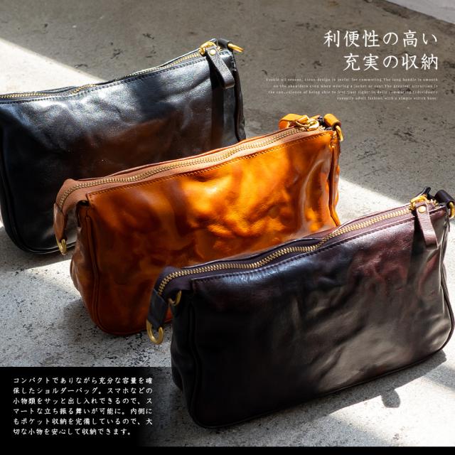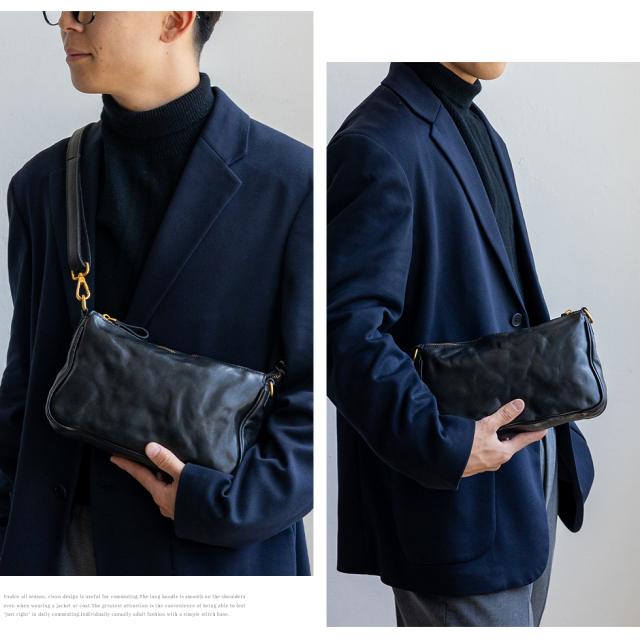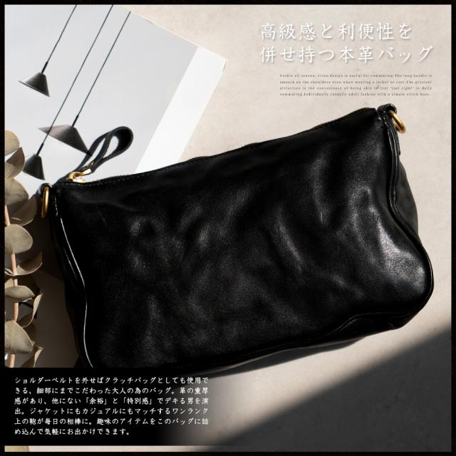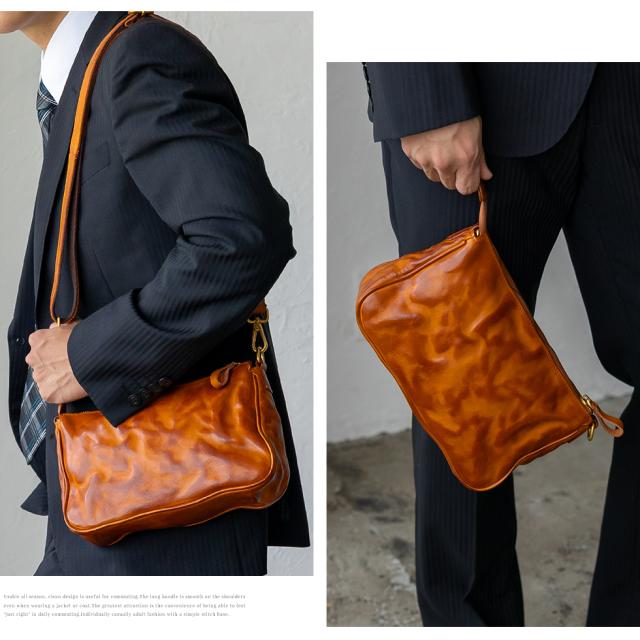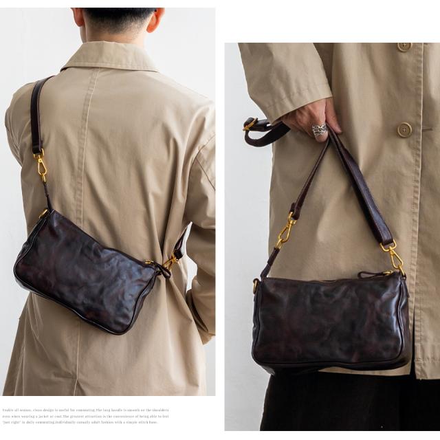 ショルダーバッグ メンズ 小さめ 革 斜めがけ かっこいい 2way ボディバッグ クラッチバッグ リアルレザー 革バッグ 本牛革 シワ加工 高級感 ミニショルダーバッグ ファスナー付き レトロ nsb-30375n 【aroco/アロコ】 秋冬 秋バッグ クリスマス プレゼント