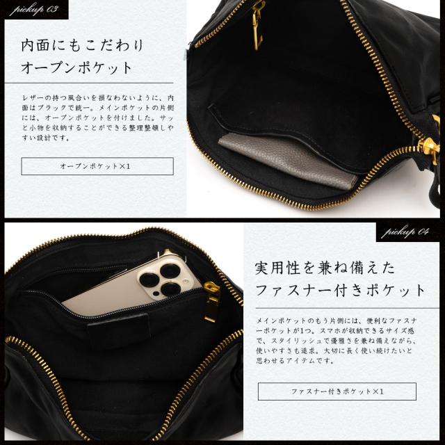 コンパクトながらマチをしっかり取った設計で、財布やスマホ、ポーチなど必要な荷物をきちんと収納できます。