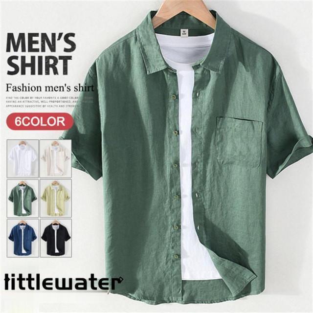 シャツ リネンシャツ メンズ カジュアルシャツ 半袖シャツ リネン 麻 無地シャツ 開襟シャツ 通気性 夏 おしゃれ トップス