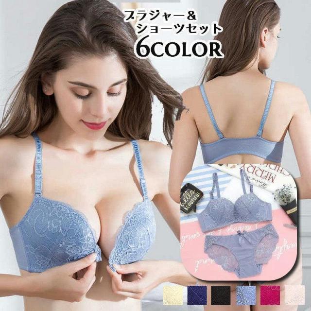 ブラジャー ショーツ 上下セット ノンワイヤーブラ 下着 女性用 レディース 婦人 フロントホック 3/4カップ スタンダードショーツ レース 花柄