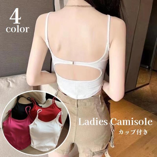 キャミソール カップ付き レディース 婦人服 女性用 トップス インナー ショート丈 背中開き 背中見せ 肌着 セクシー おしゃ