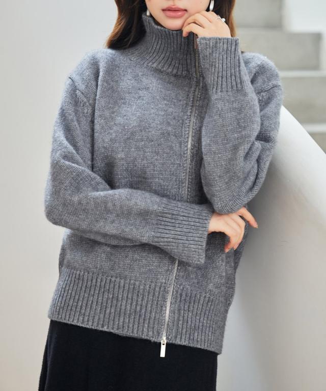 オシャレで防寒機能性も高いニット素材のオープンファスナーブルゾン。