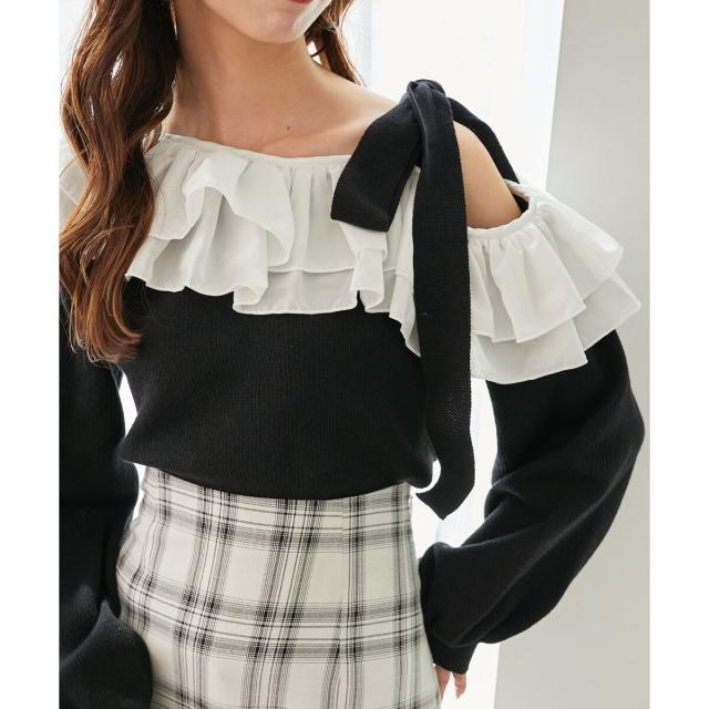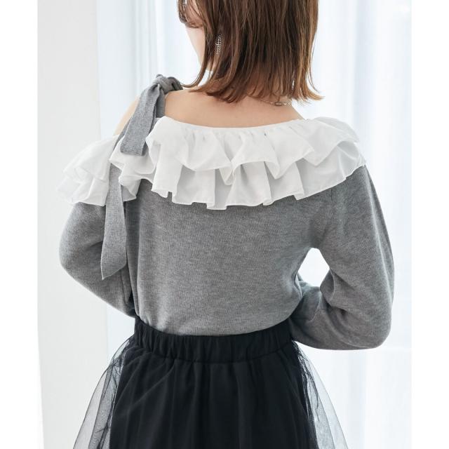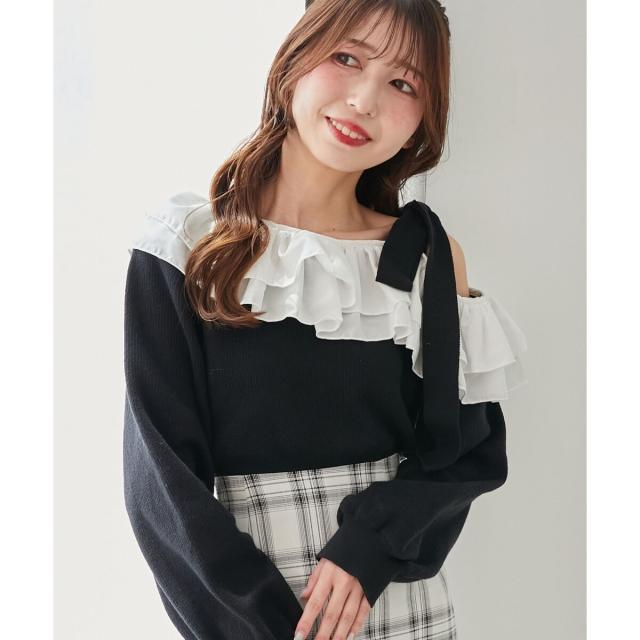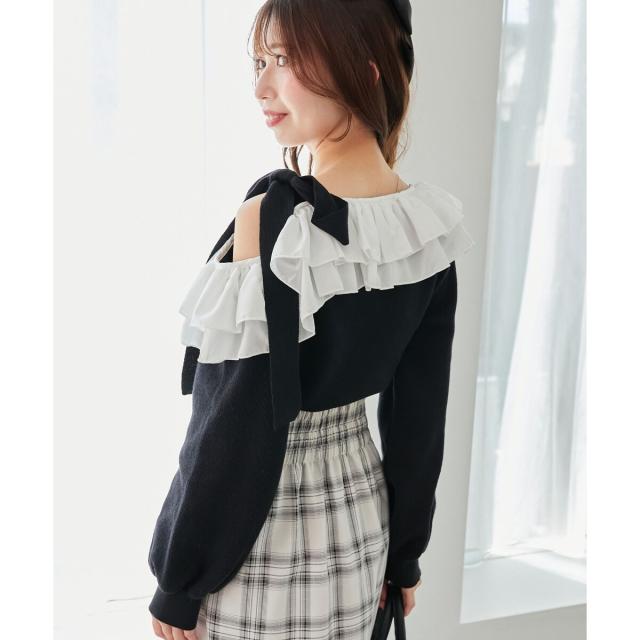 マジェスティックレゴン(MAJESTIC LEGON)/フリルワンショル肩リボンニット