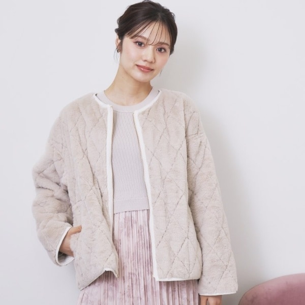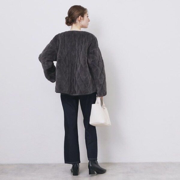 ・トレンド感たっぷりのふんわりファーと、クラシカルなキルティングのリバーシブル仕様で、シーンに合わせて着こなしをチェンジ。