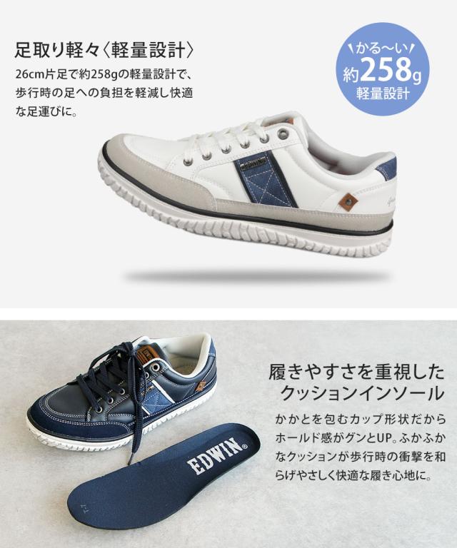 エドウィン スニーカー メンズ ローカット 履きやすい 歩きやすい 軽い クッションインソール 軽量シューズ 通勤 靴 紐 カジュアル 大人 男性 ローカットスニーカー おしゃれ ユーズドテイスト アウトソール汚し加工 EDWIN 7770