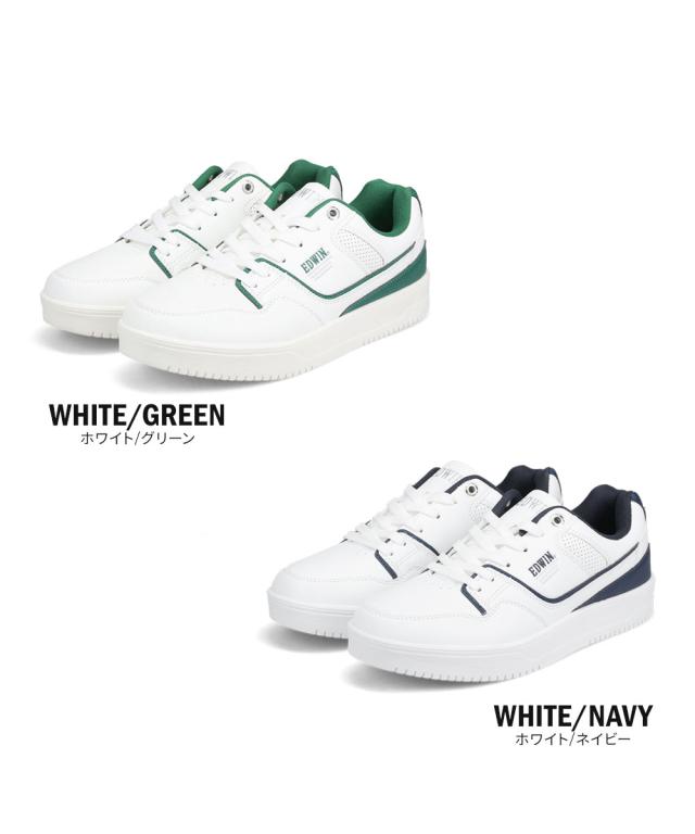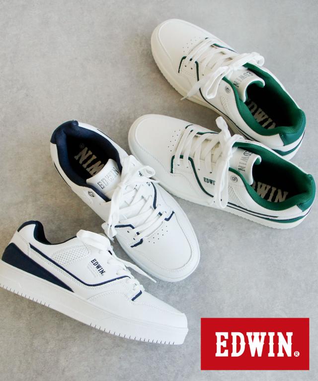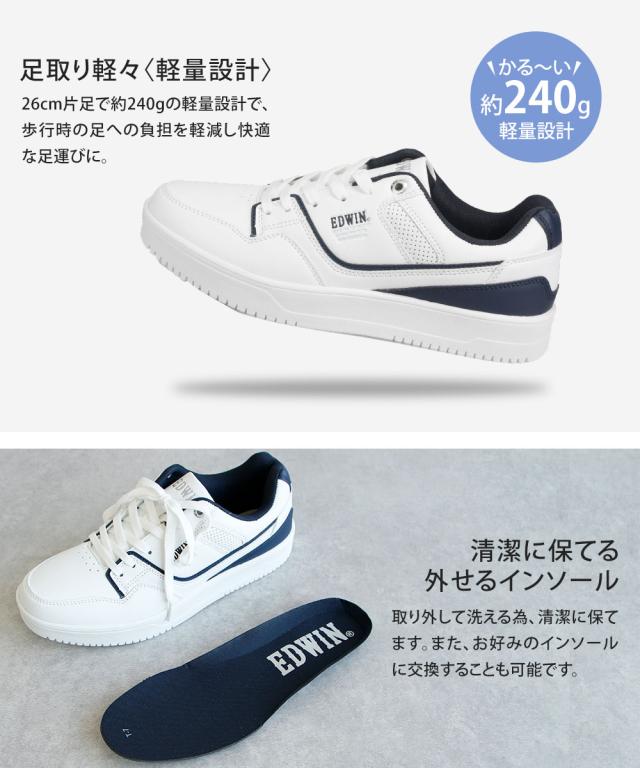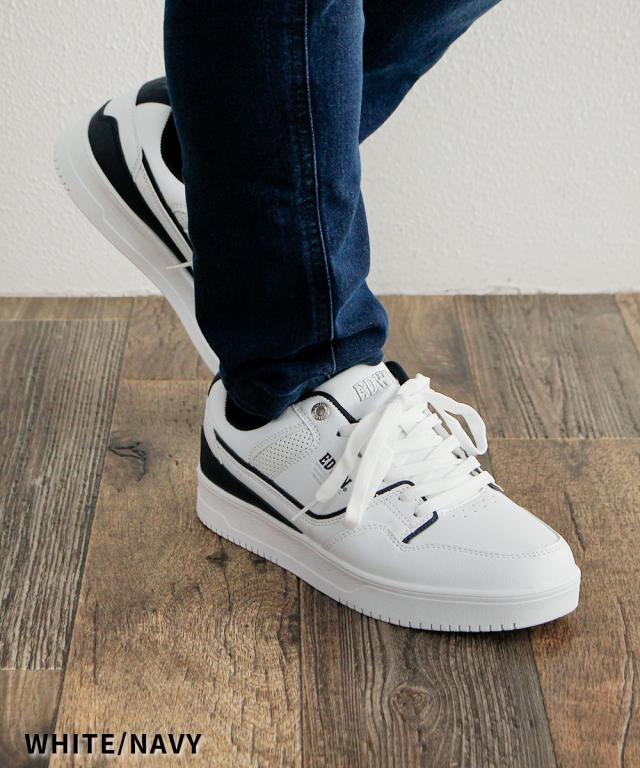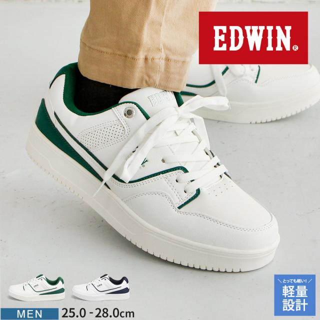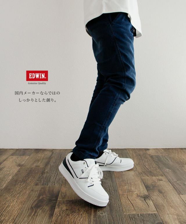 エドウィン スニーカー メンズ ローカット 厚底 履きやすい 歩きやすい 軽い クッションインソール 軽量シューズ 通勤 通学 靴 紐 スタイルアップ おしゃれ カジュアル デイリースタイル 普段履き 大人 男性 白スニーカー ホワイト EDWIN 7764