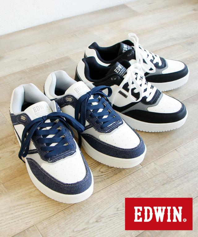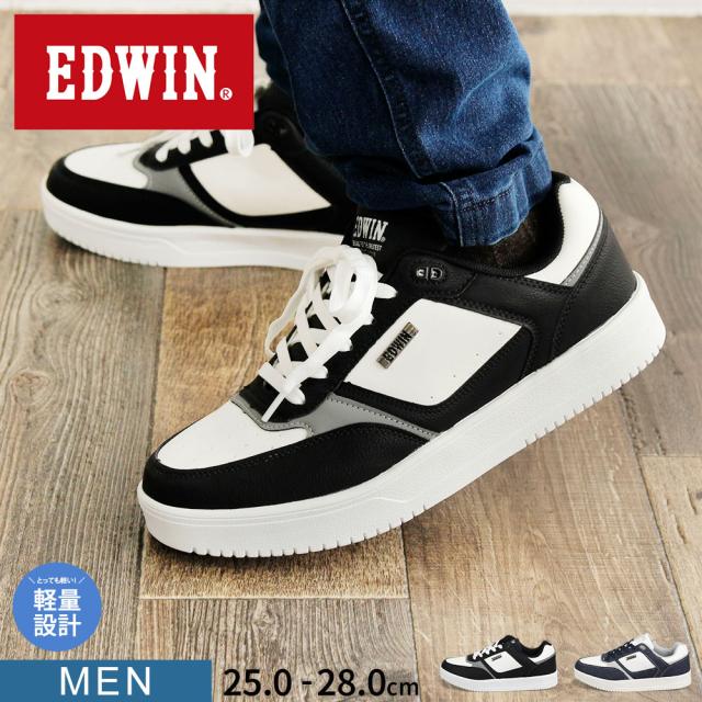 エドウィン スニーカー メンズ ローカット 厚底 履きやすい 歩きやすい 軽い クッションインソール 軽量シューズ 通勤 通学 靴 紐 スタイルアップ おしゃれ カジュアル デイリースタイル 普段履き 大人 男性 白スニーカー ホワイト EDWIN 7766