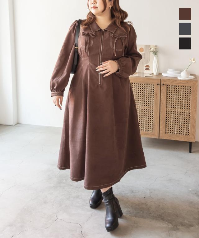 | 3Lを着用してちょうどいいサイズ感でした!後ろはゴムになっているので窮屈なく着用できました。心配な方はバストサイズの確認をお勧めします◎おなか周りにタックが入ったデザインで、ウエストをキュッと細く見せてくれて着やせ効果抜群の1枚です!高めのウエスト位置から裾に向かってひらりと広がり、スタイルアップして女性らしさのある雰囲気。ステッチが配色になっていたり、ハーフジップだったりとメリハリの出るポイントがあって可愛いだけじゃなくトレンド感もあって着映えするワンピです! |