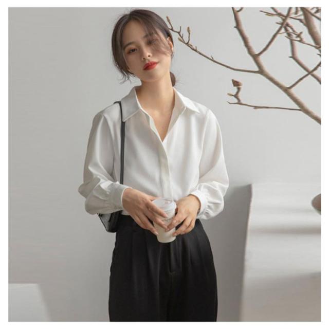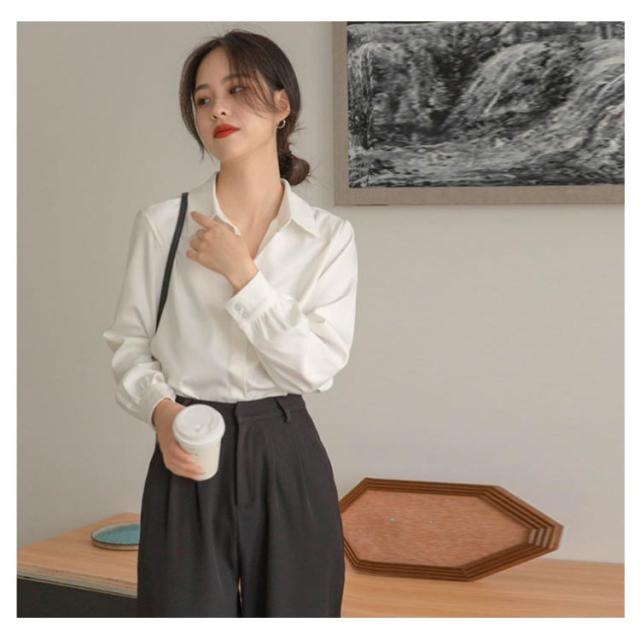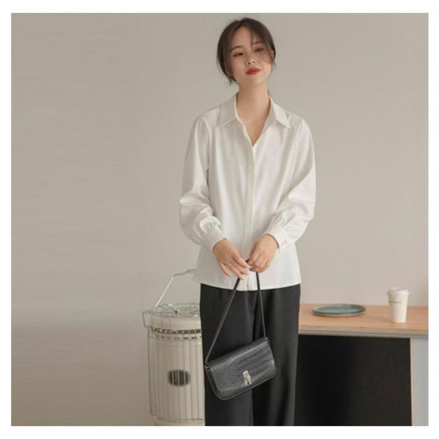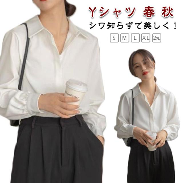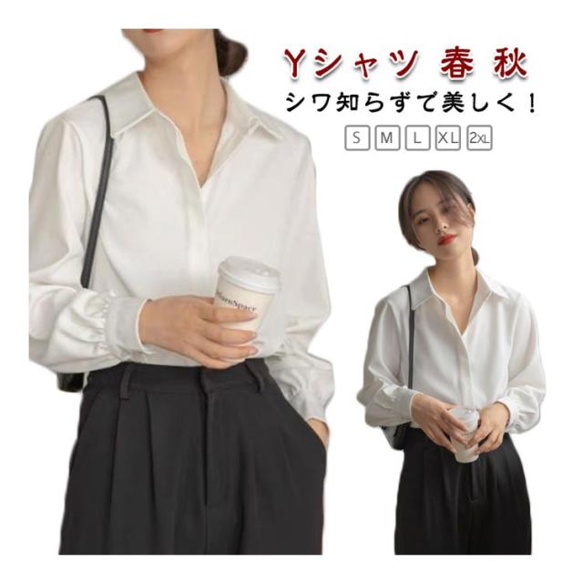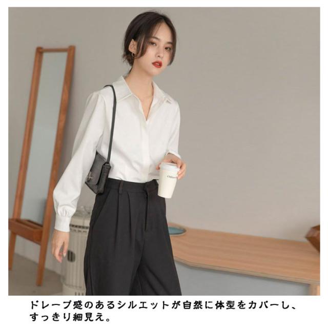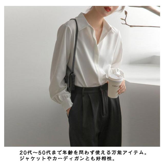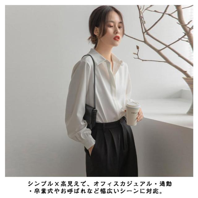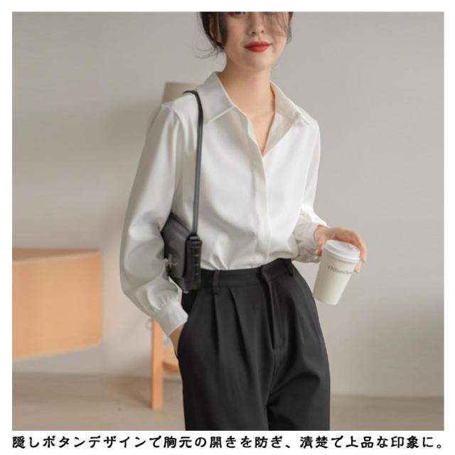 長袖 ブラウス シワになりにくい 白シャツ シャツ Yシャツ オフィス 隠しボタン 大きいサイズ 体型カバー シワになりにくい 春 秋 通勤 OL レディース エレガント 上品 トップス 卒業式 入学式 20代 30代 40代